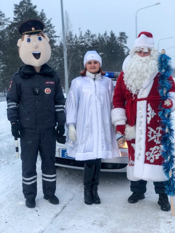 В Сургутском районе инспекторы ГИБДД, переодевшись в новогодние костюмы, провели профилактическое мероприятие «Полицейский Дед Мороз».